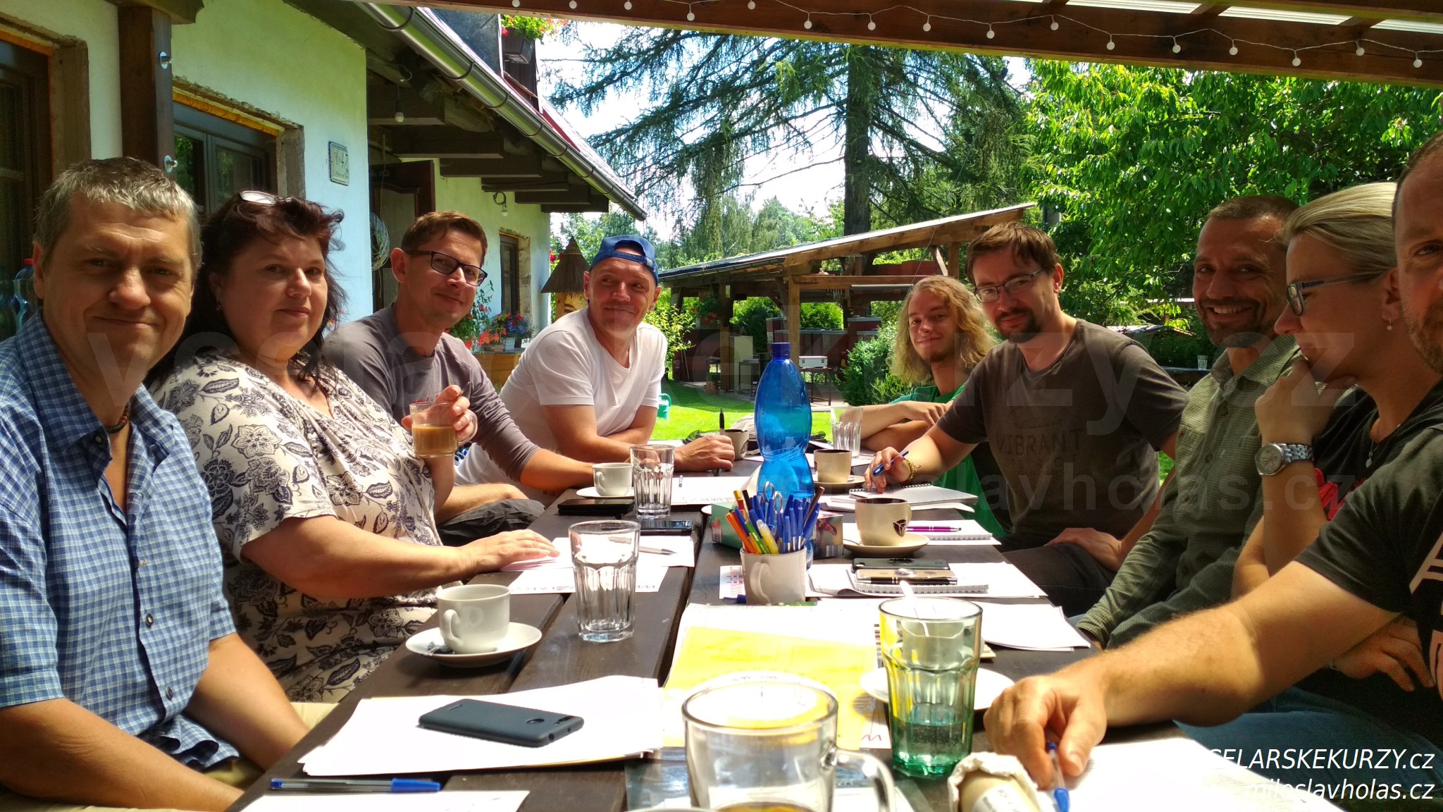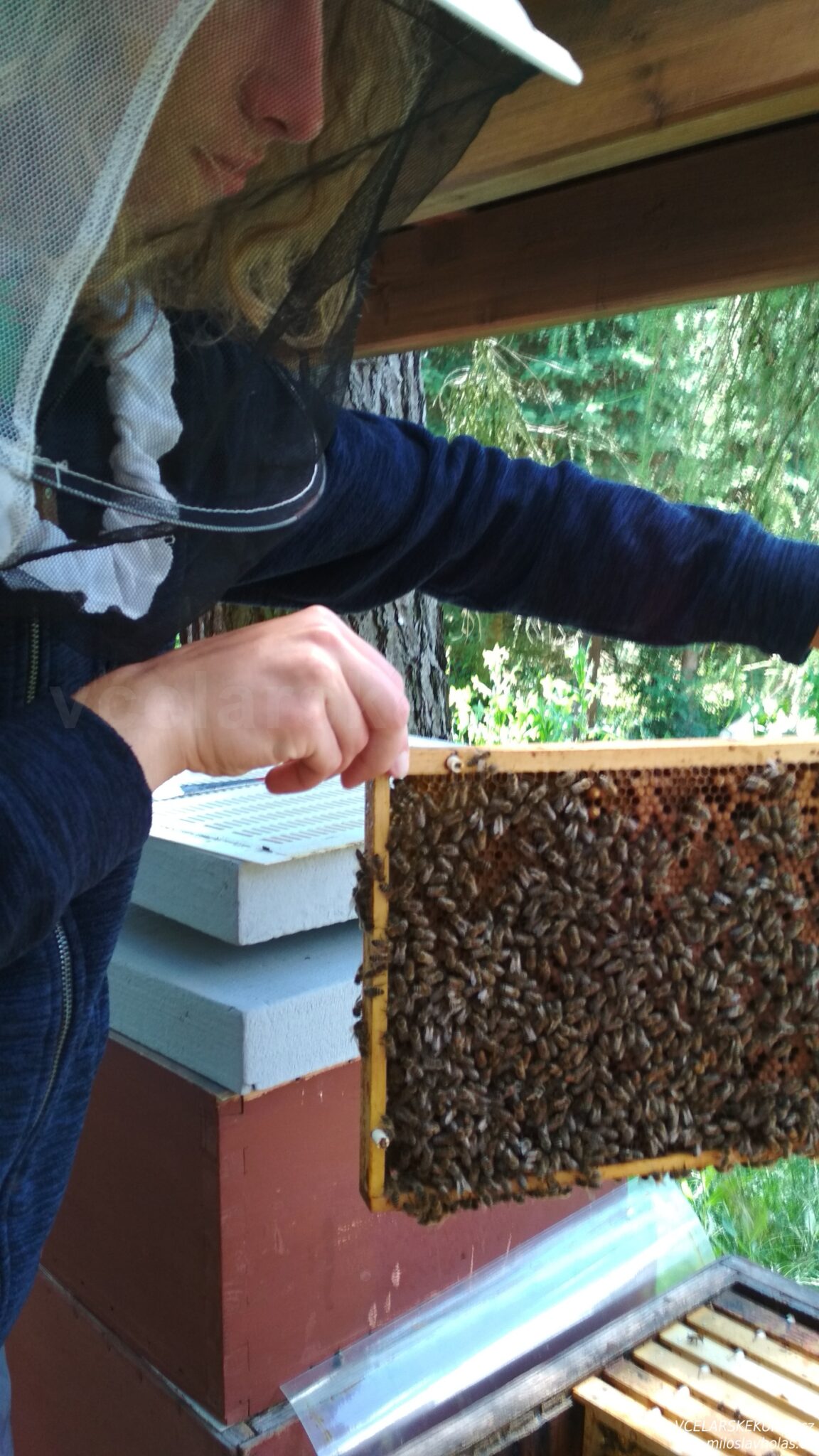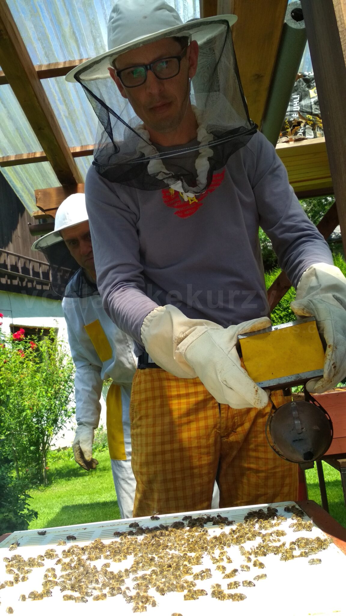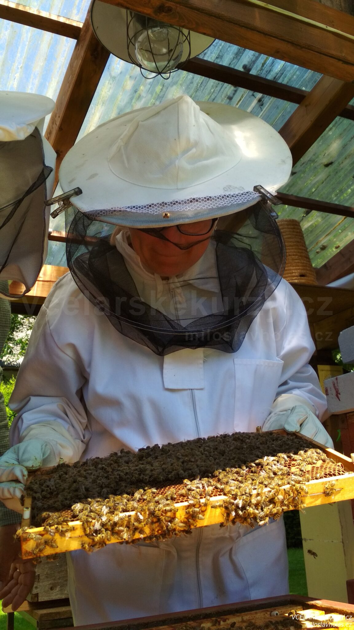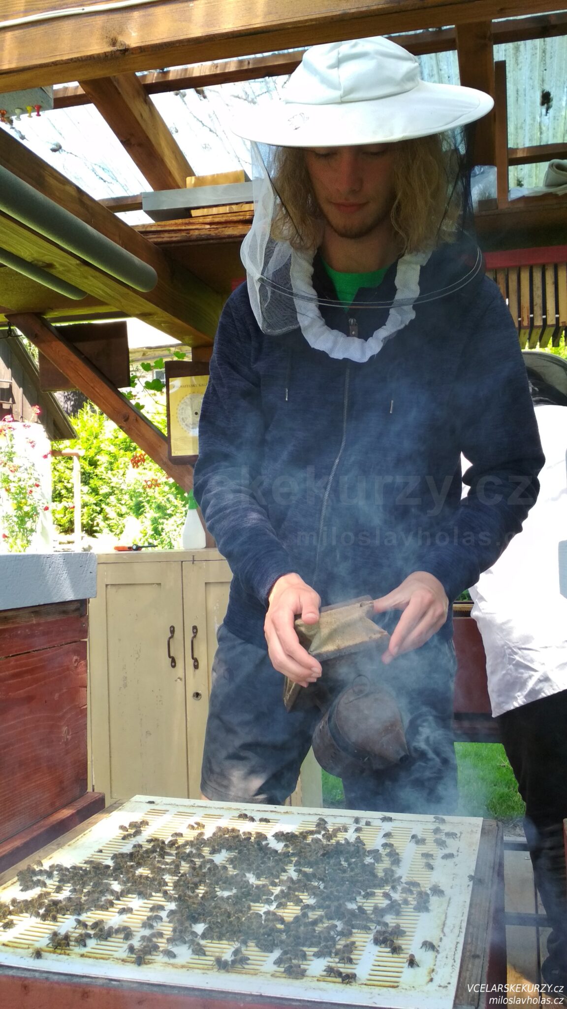Letos poprvé jsme se sešli o prázdninách. Prima parta lidí se zájmem o přírodu a včelaření. Krásné slunečné počasí nám umožnilo prohlédnout si včely při jejich každodenní práci.
